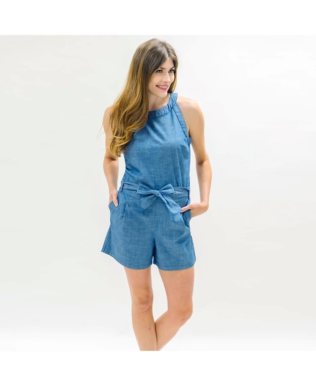 Hope Henry Mommy Me Sleeveless Linen Button Front Navy Riviera Print Romper