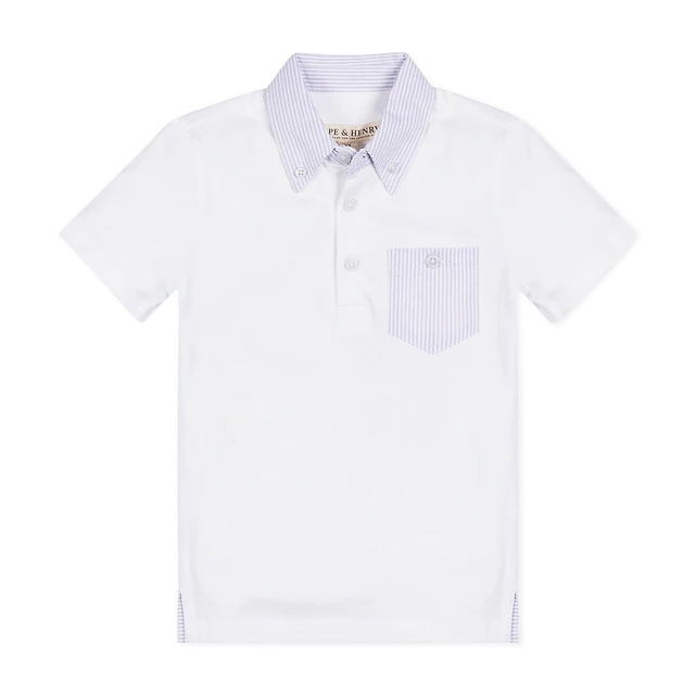 Hope & Henry Baby Boys Short Sleeve Jersey Polo with Seersucker Trim