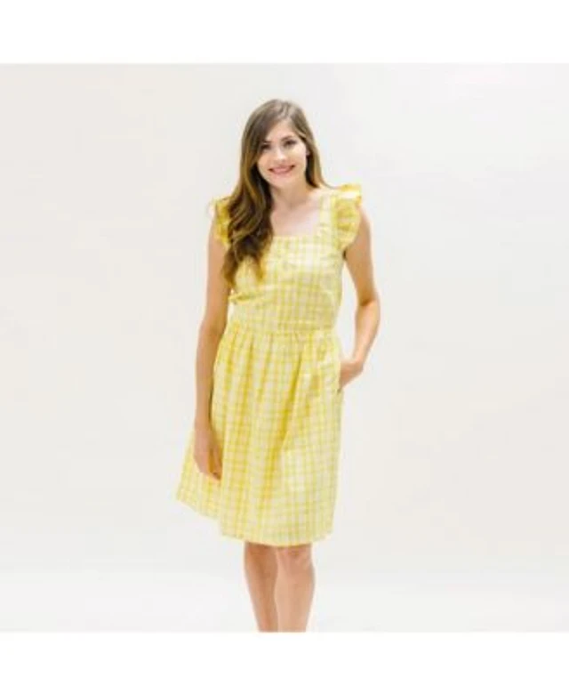 Mommy Me Linen Dress Romper In Yellow Plaid