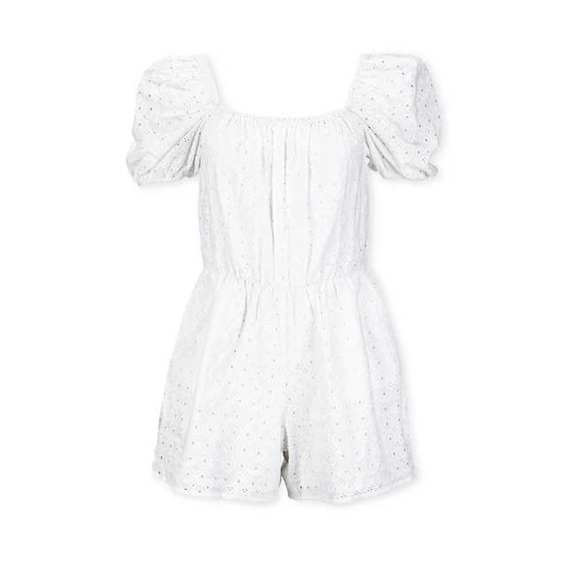 Hope & Henry Women's Organic Cotton Puff Sleeve Eyelet Romper