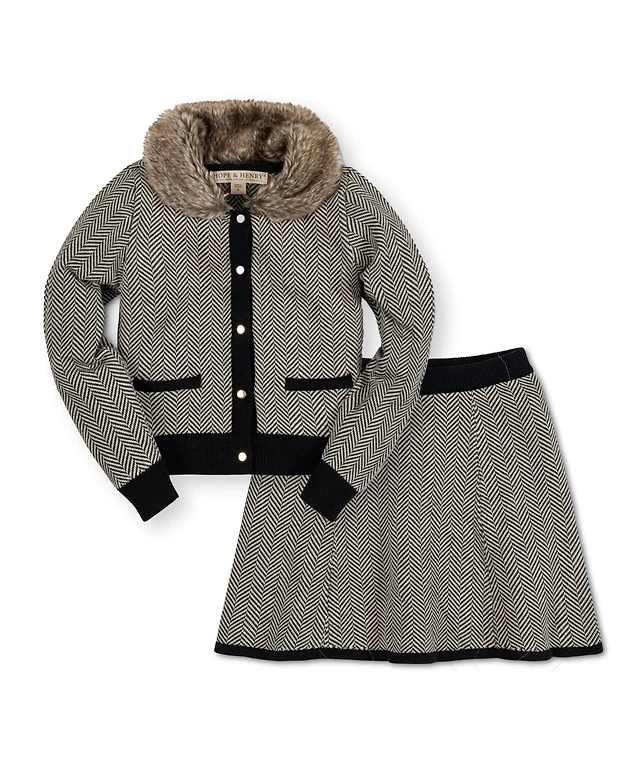 Hope & Henry Baby Girls Long Sleeve Classic Cable Cardigan Sweater