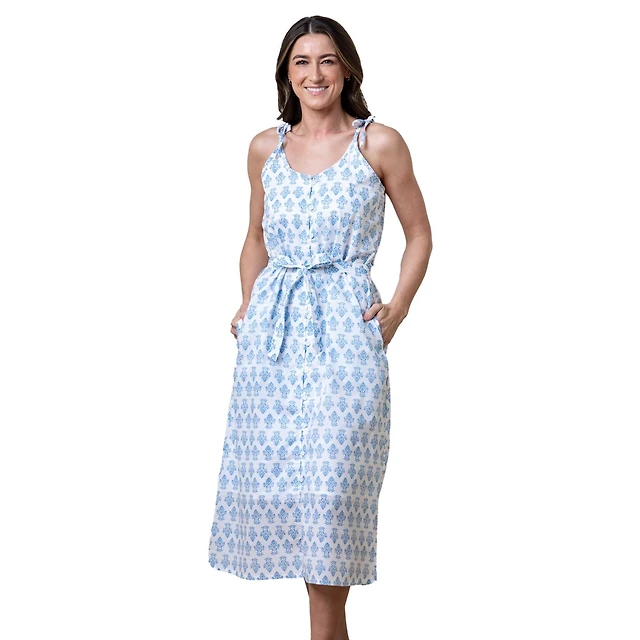 Hope & Henry Women's Organic Sleeveless Button Front Sundress with Sash