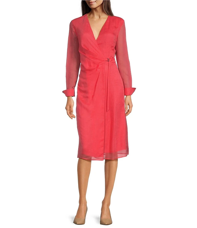 BOSS by Hugo Boss Dosala V-Neck Long Sheer Sleeve Wrap Midi Dress
