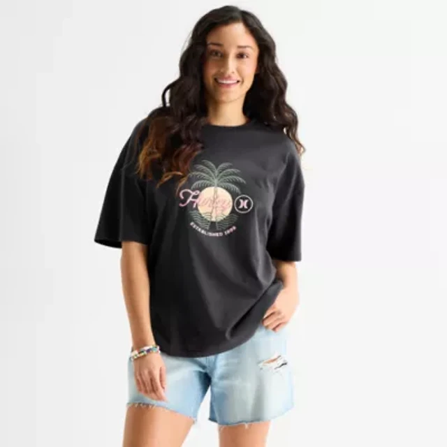 Hurley Womens Juniors Crew Neck Short Sleeve Fitted Graphic T-Shirt