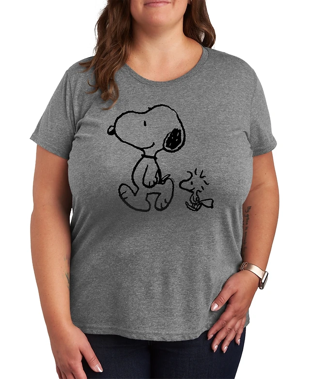 Hybrid Apparel Trendy Plus Peanuts Snoopy Woodstock Walk Graphic Crew Neck T-Shirt