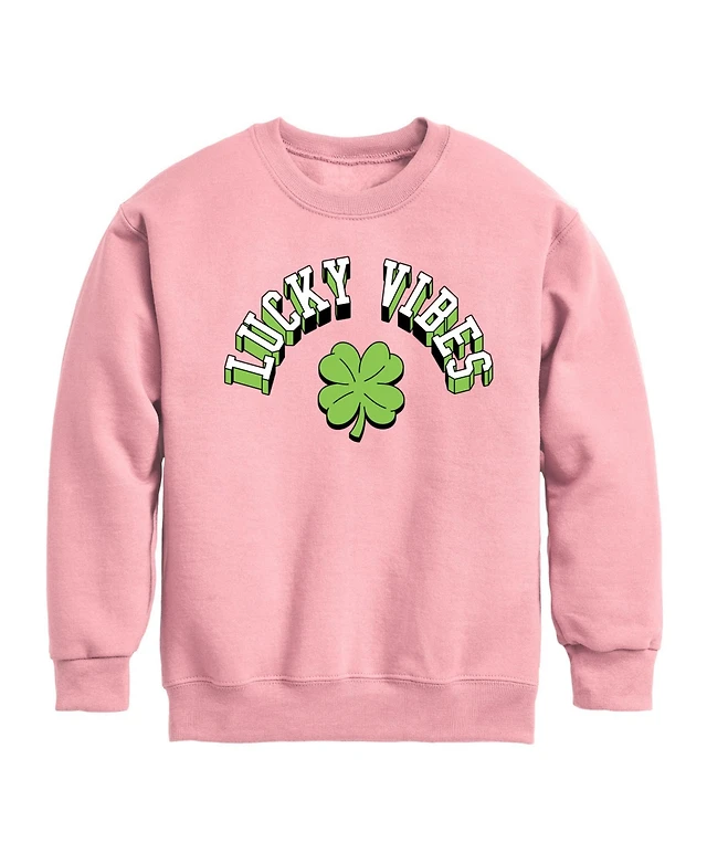 Hybrid Apparel Big Girls Lucky Vibes Graphic Crew Fleece T-Shirt