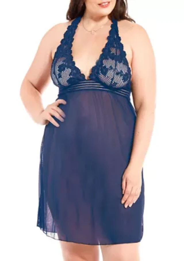 iCollection Plus Daisy Lace Caged Babydoll Lingerie Nightgown