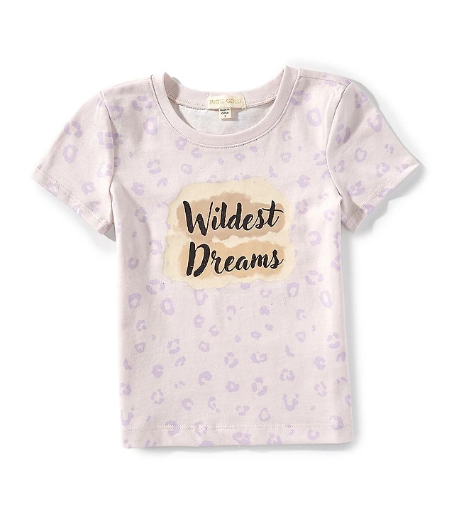 Indie Gold Little Girls Short Sleeve Leopard Print T-Shirt