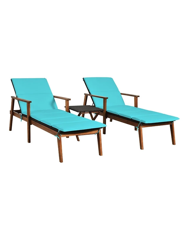 Inolait 3 Pieces Portable Patio Cushioned Rattan Lounge Chair Set with Folding Table