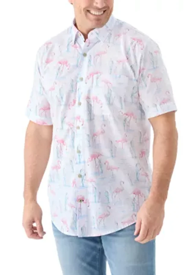 Big & Tall Dockside Tropical Print Button Down Shirt