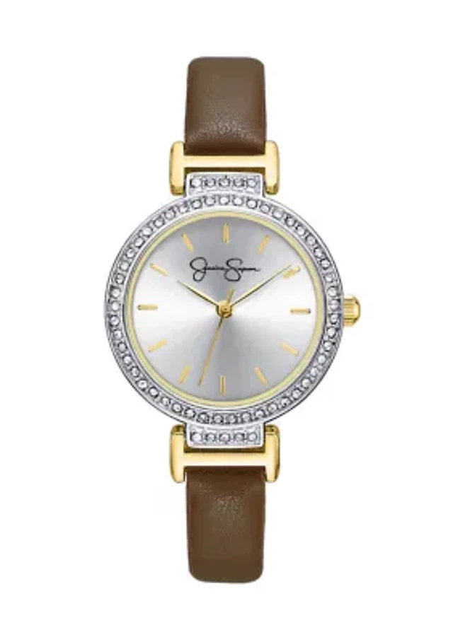 Rose Gold Tone 2 Piece Crystal Bracelet and Watch Set