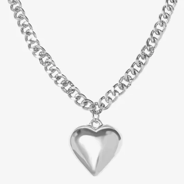 JS Jessica Simpson Silver Tone Womens Glass Alloy Heart 17 Inch Pendant Necklace