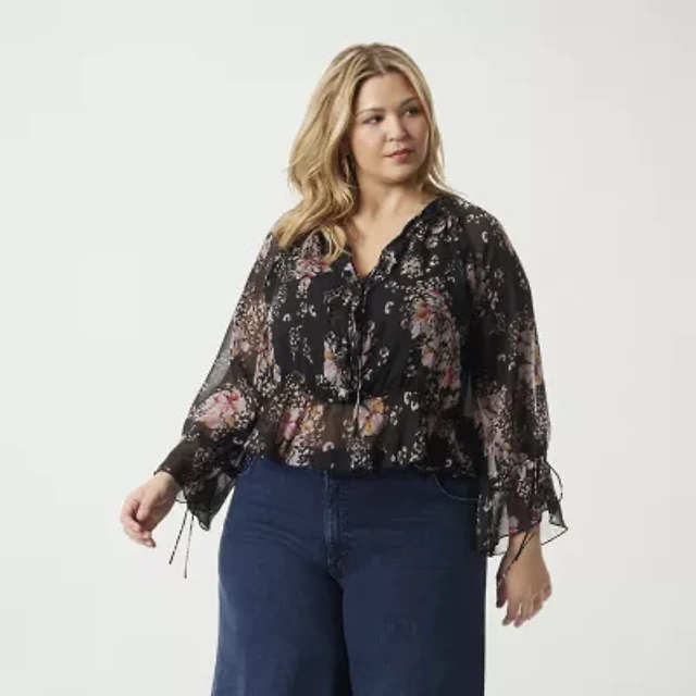 JS Jessica Simpson Womens Plus Scoop Neck Short Sleeve Blouse