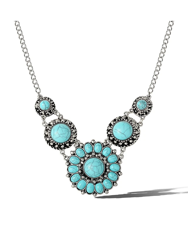 Jessica Simpson Turquoise & Feather Pendant Necklace in Antique Silver