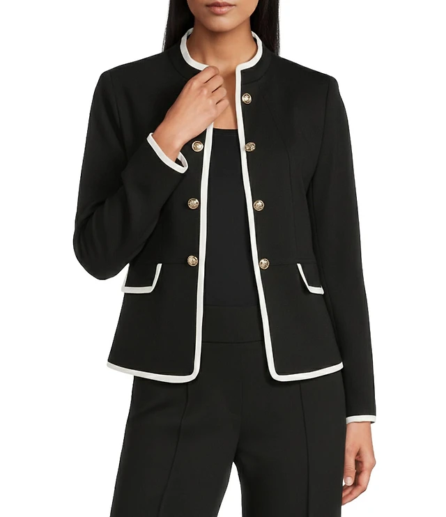 Jones New York Womens Faux Double Breasted Jacket Long Sleeve Mock Neck Top Pull On High Double Wide Waistband Straight Leg Pants