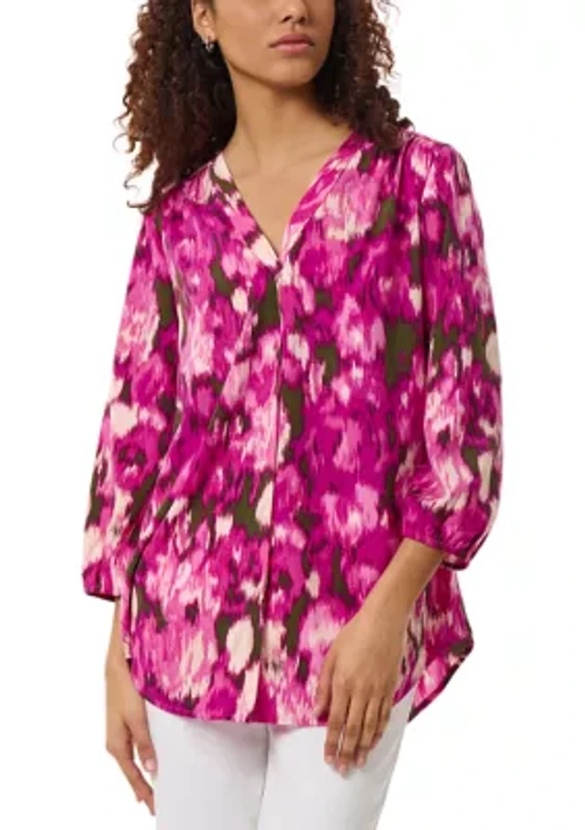 Petite 3 Quarter Sleeve V-Neck Pleat Front Tunic Blouse