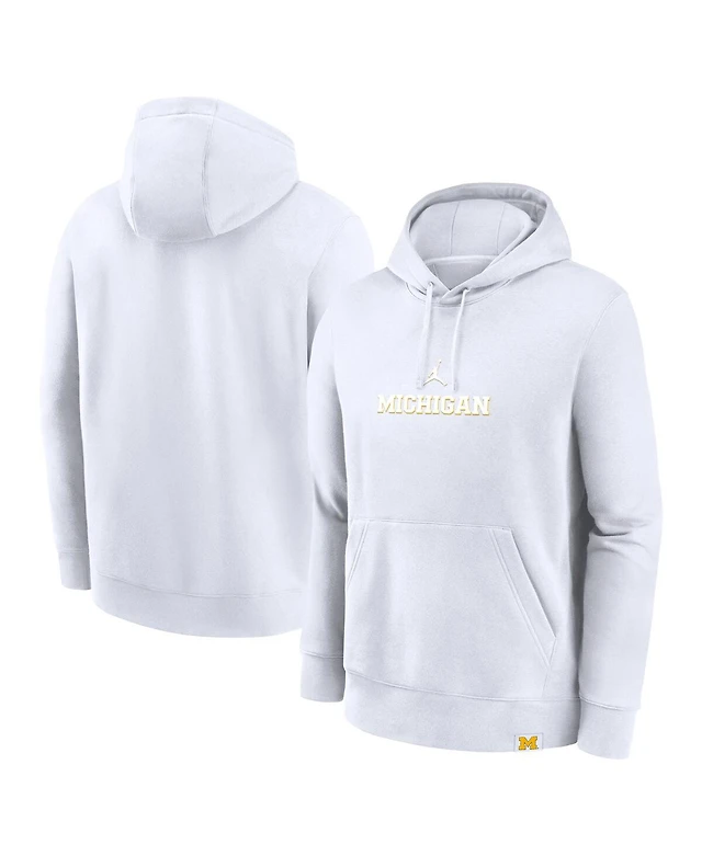 Jordan Men's White Michigan Wolverines Statement Wordmark Lockup Pullover Hoodie