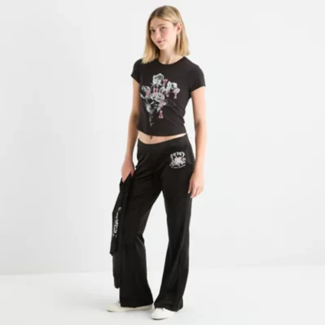 Juicy By Couture Womens Juniors Plus Flare Mid Rise Track Pant