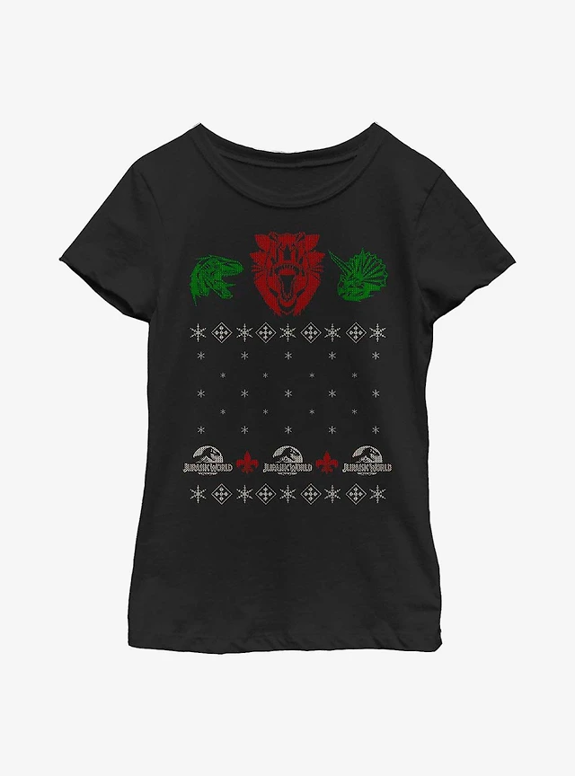 Jurassic World Christmas Sweater Pattern Youth Girls T-Shirt