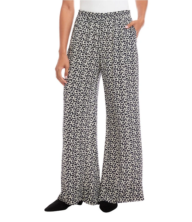 Karen Kane Floral Print High Rise Wide Leg Pants