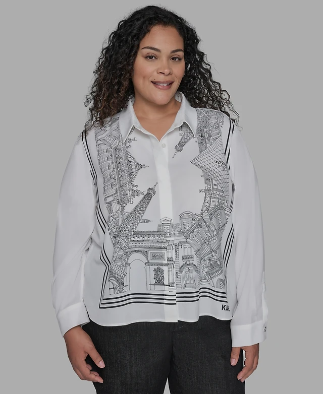 Karl Lagerfeld Paris Plus Size Paris-Print Button-Front Blouse