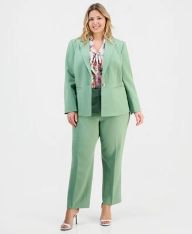 Kasper Plus Size Notch Collar Seamed One Button Jacket Pull On Straight Leg Pants