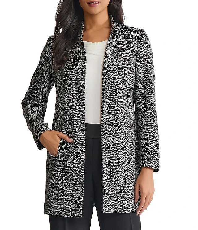 Kasper Stand Collar Long Sleeve Knit Jacquard Topper Jacket