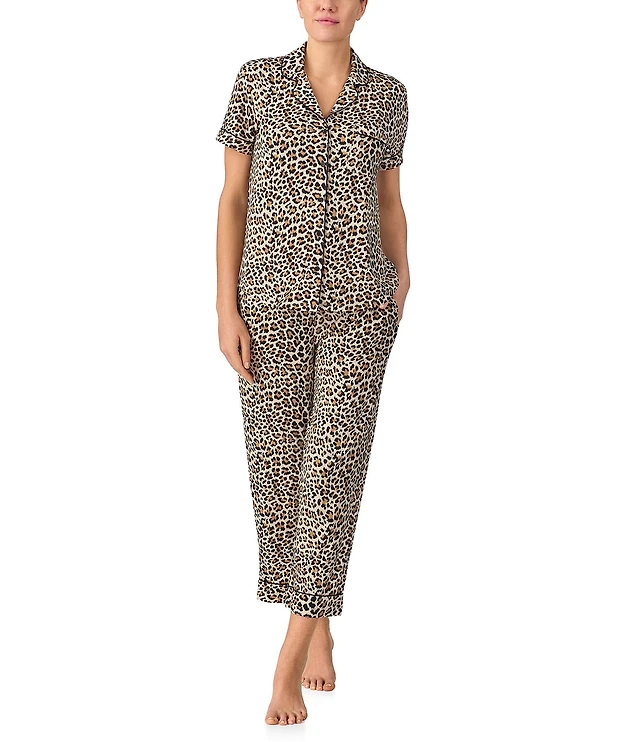 kate spade new york Cozy Jersey Knit Animal Print Long Sleeve Notch Collar Holiday Pajama Set