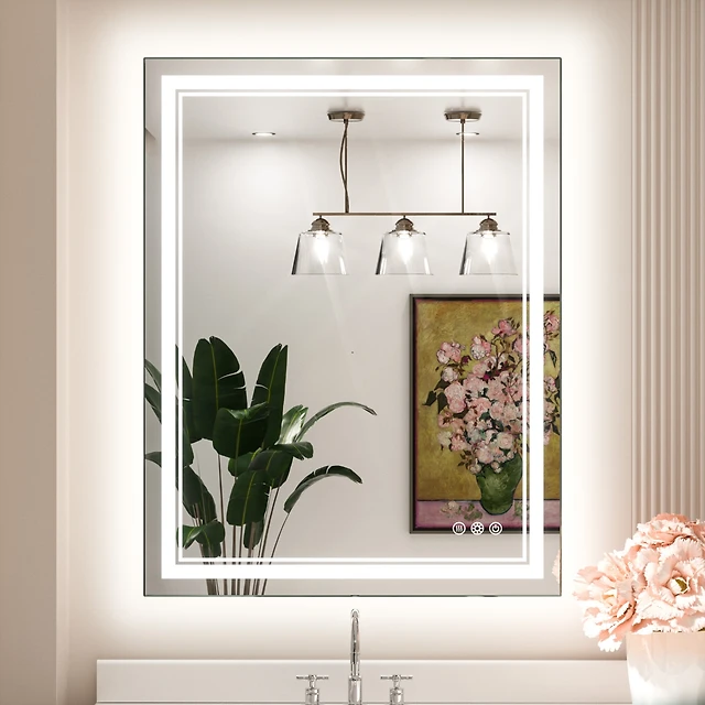 keonjinn Inch Led Bathroom Vanity Mirror Tempered Glass Front & Backlit Dimmable 3 Color Lighted Mirror Anti-fog Memory Function Frameless