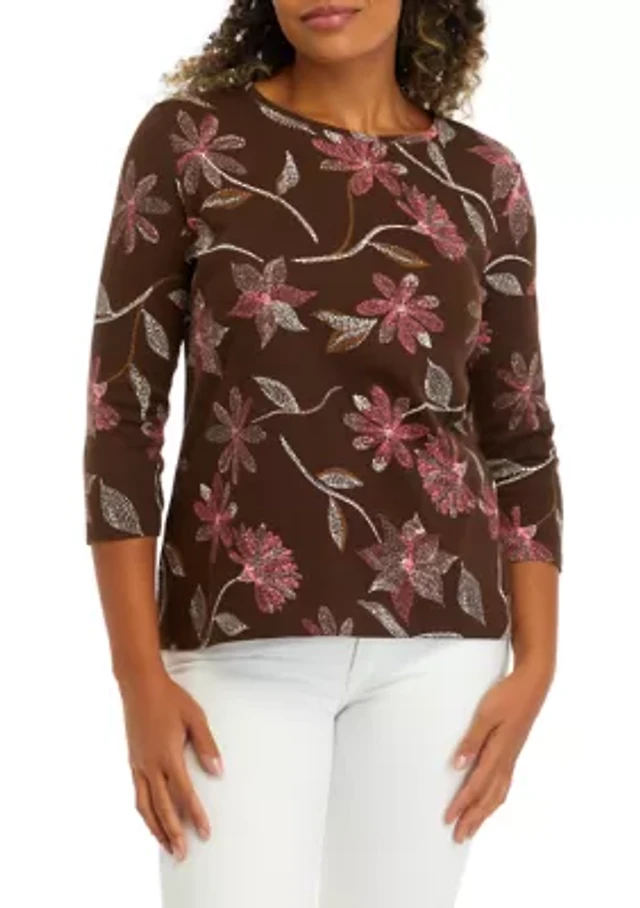 Women's 3/4 Sleeve Printed Henley Top