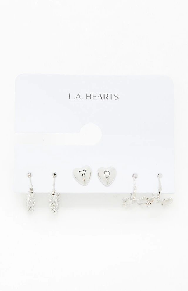 LA Hearts Silver Teardrop Metal Earrings