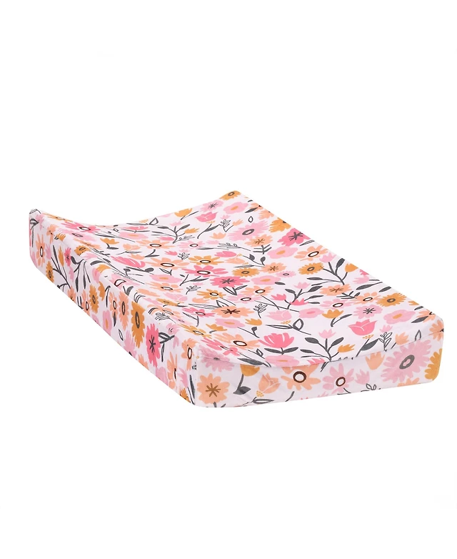 Lambs & Ivy Calypso Pink/Taupe Leaf Print Baby Changing Pad Cover