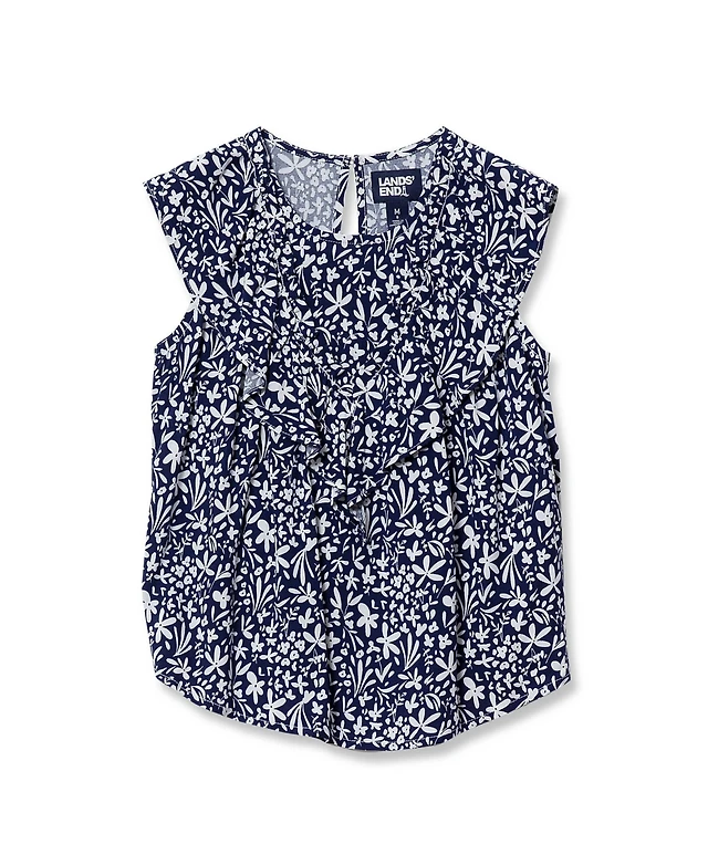 Lands' End Women's Puff Sleeve Slub Ruffle Pintuck Top
