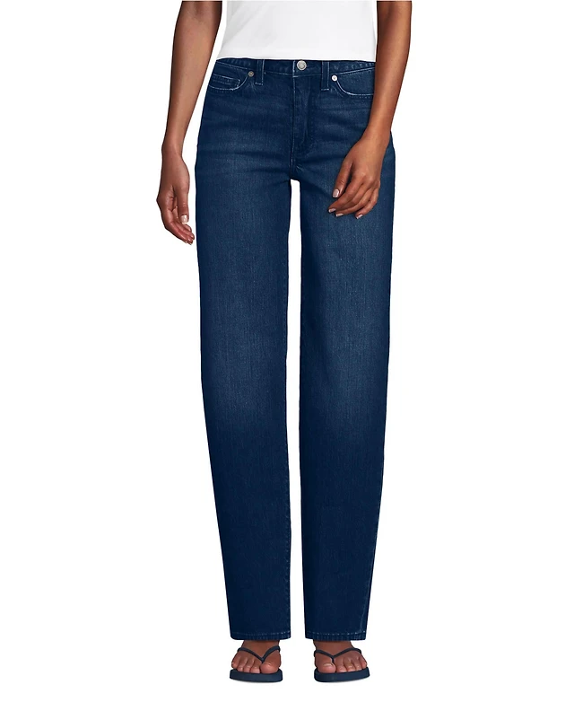Lands' End Women's Soft Denim Mid Rise Relaxed Straight Leg Embroidered Jeans