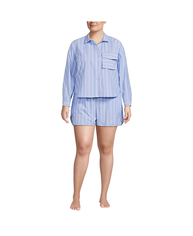 Lands' End Plus Cooling 3 Piece Pajama Set - Long Sleeve Top Cami and Shorts
