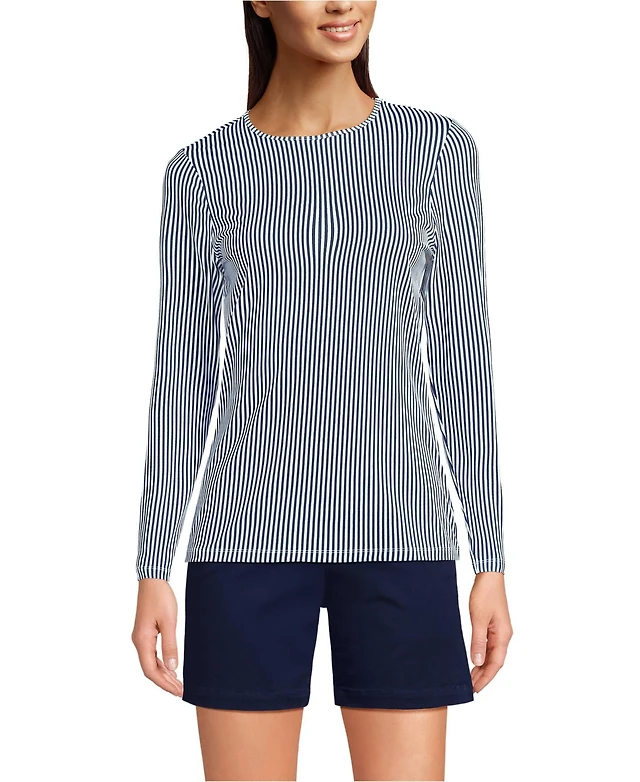 Lands' End Women's Long Sleeve Sunshade Upf 50 Quick Dry Crewneck Garden Tee