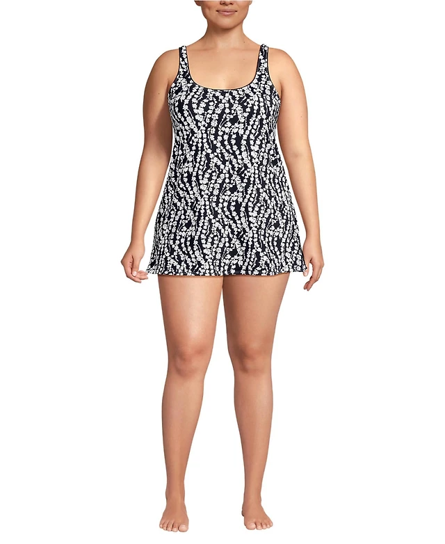 Lands' End Women's Tugless High Neck Swim Dress Swimsuit