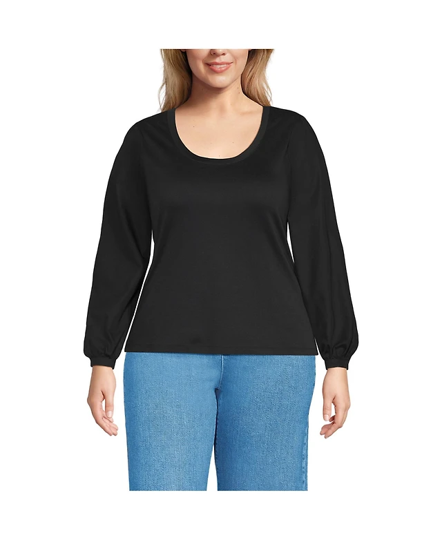 Lands' End Women's Supima Interlock Scoop Neck Blouson Sleeve Top