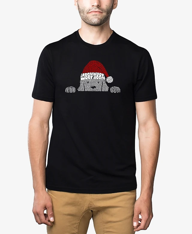 La Pop Art Men's Christmas Peeking Dog Printed Word T-shirt