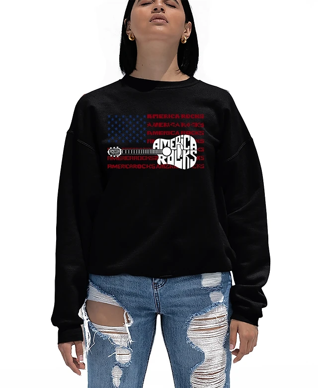 La Pop Art Women's America Rocks Word Crewneck Sweatshirt