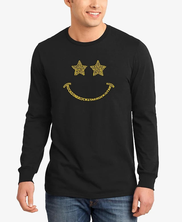 La Pop Art Men's Rockstar Smiley Word Long Sleeve T-shirt