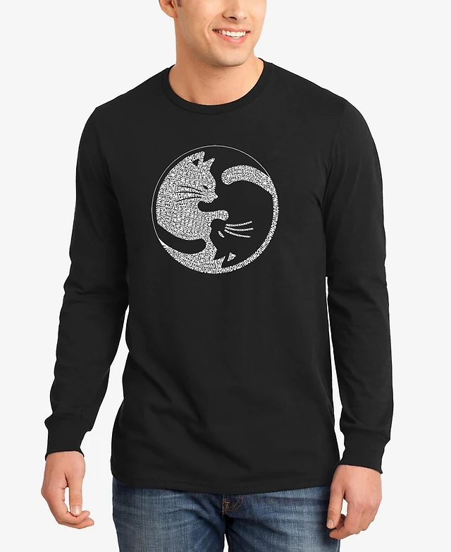 La Pop Art Men's Yin Yang Cat Word Long Sleeve T-shirt