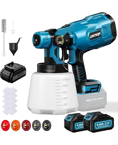 Ldhthopi Cordless Paint Sprayer 1000W with 2x4000mAh Batteries, 1200ml Container, 5 Copper Nozzles, Hvlp Technology for Home and Furniture Painting