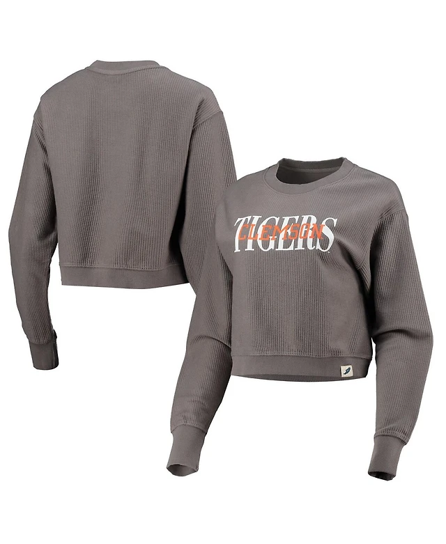 Women's League Collegiate Wear Graphite Clemson Tigers Classic Corded Timber Crop Pullover Sweatshirt