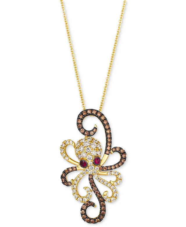 Le Vian Passion Ruby (1/6 ct. t.w.) & Chocolate Ombre Diamond (1-1/3 ct. t.w.) Equestrian Adjustable 20" Pendant Necklace in 14k Gold
