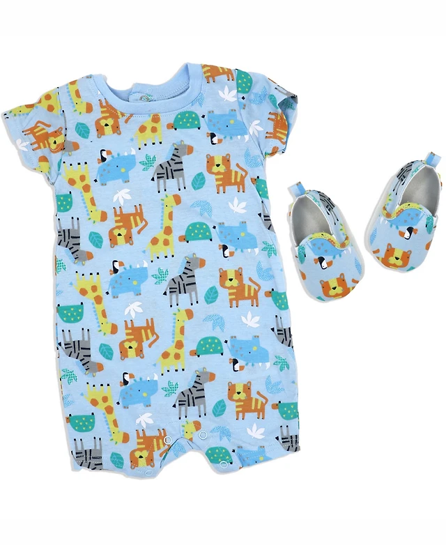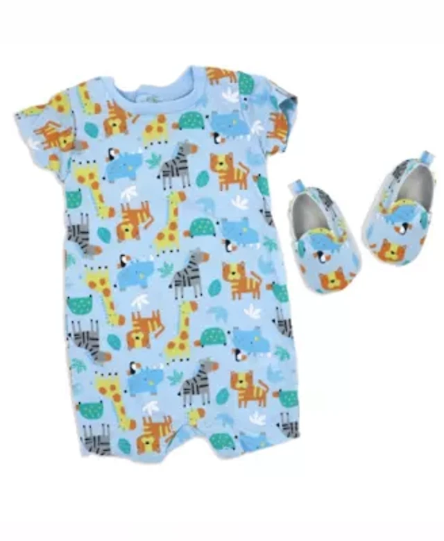Lily & Jack Baby Boys Safari Short Sleeved Romper and Shoes, 2 Piece Set