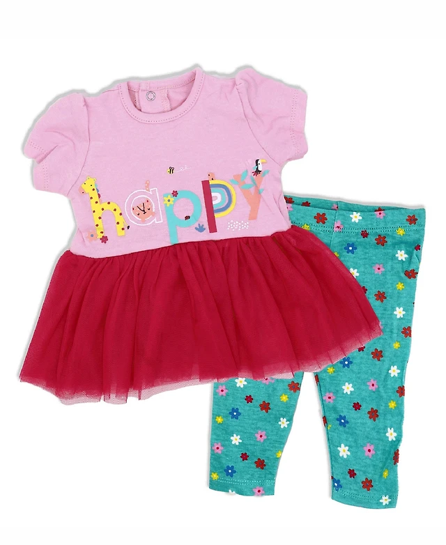 Lily & Jack Baby Girls Short Sleeved Happy Tutu Dress and Leggings, 2 Piece Set