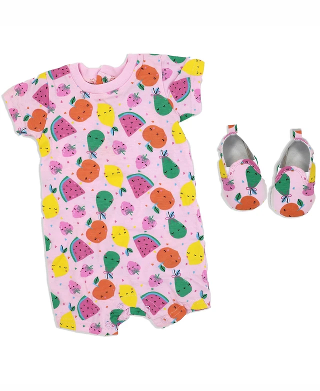 Lily & Jack Baby Girls Fruity Short Sleeved Romper and Shoes, 2 Piece Set