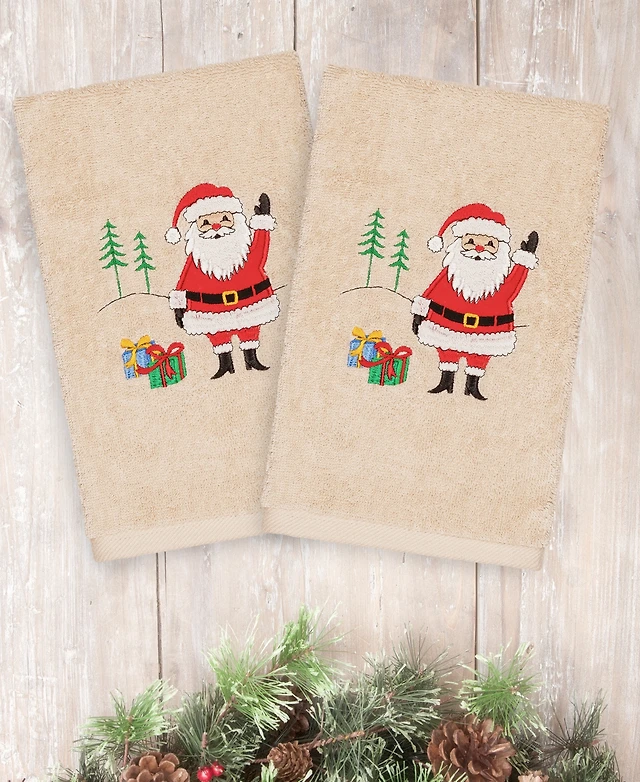 Linum Home Christmas Ornaments Embroidered 100% Turkish Cotton 2-Pc. Hand Towel Set