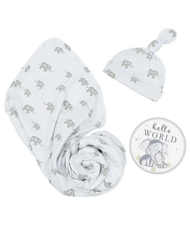 Living Textiles Baby Boys and Girls 3-Piece Elephant Heritage Collection Hello World Gift Set